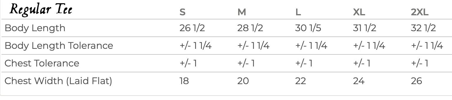 These are printed on heavyweight tee shirts in waterbed ink. Moss is Garment Dyed. Size chart in photos.