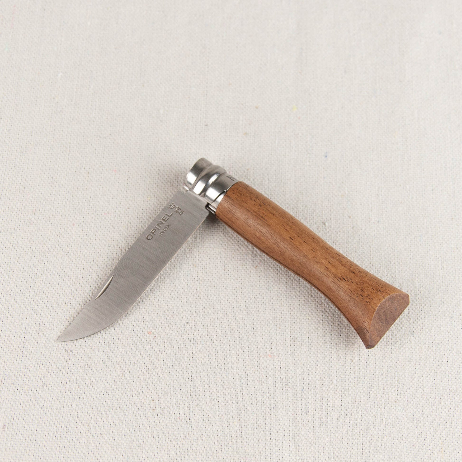 A classic Opinel No. 6 Knife with a Walnut Handle. Stainless Steel Blade. Approx. 3" folded.