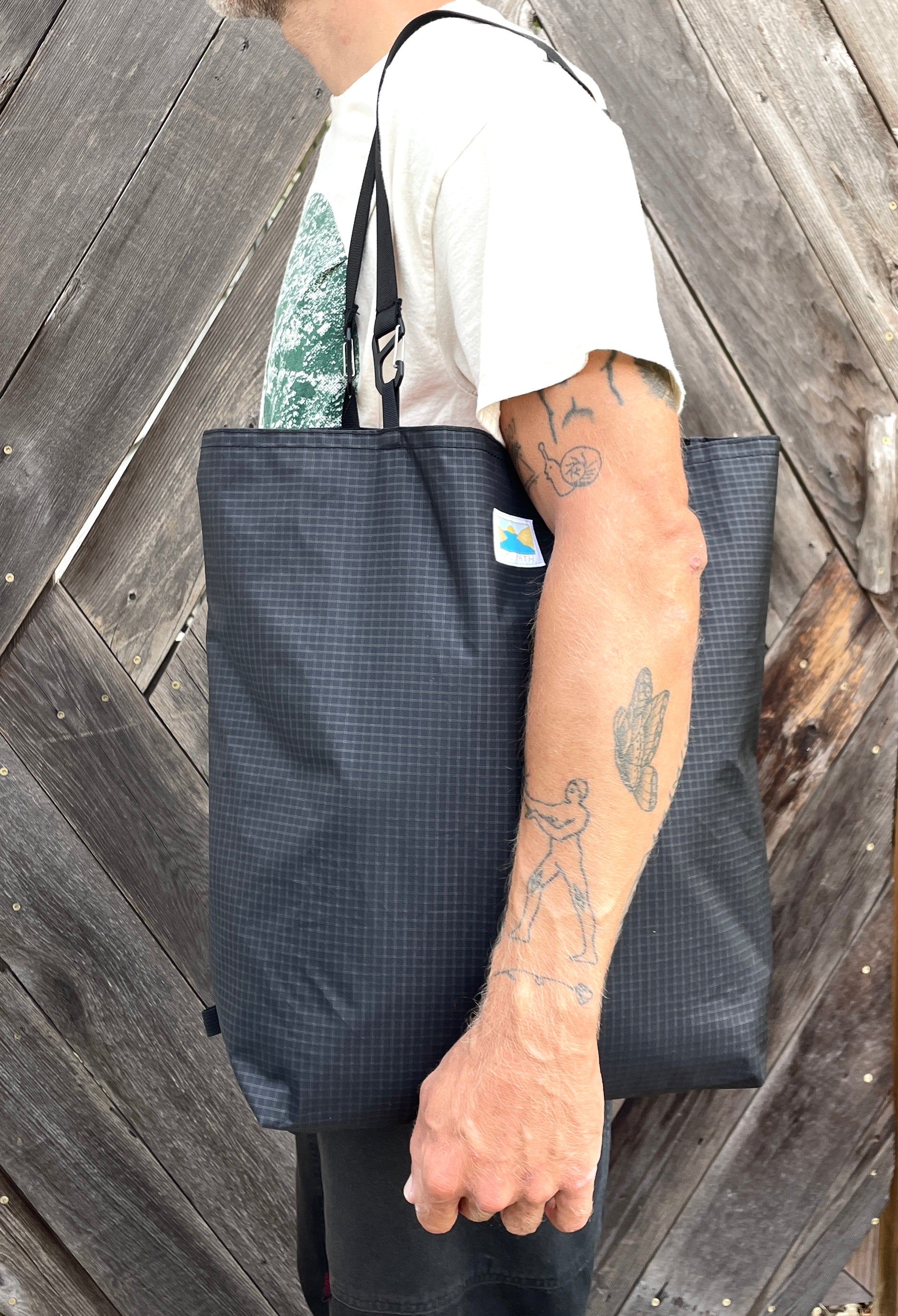The Con/vert Bag can, but doesn't have to, fulfill a specific need. It's great for those times you prefer a tote but need to wear it on your back for a little while. Maybe you got some groceries but you're on a bike with no basket. The adjustable straps connect to the bag with clips that go through loops on the bag at the top or on the lower sides for either a tote or backpack configuration. The top loops are offset a bit to make it easy to thread the clip through both sides to keep the bag closed when worn as a backpack... or maybe you just want to use it as a tote! This bag can also pack into its Bright Orange inner zipper pocket for compact carry when you are not using it. They are made here in Portland!